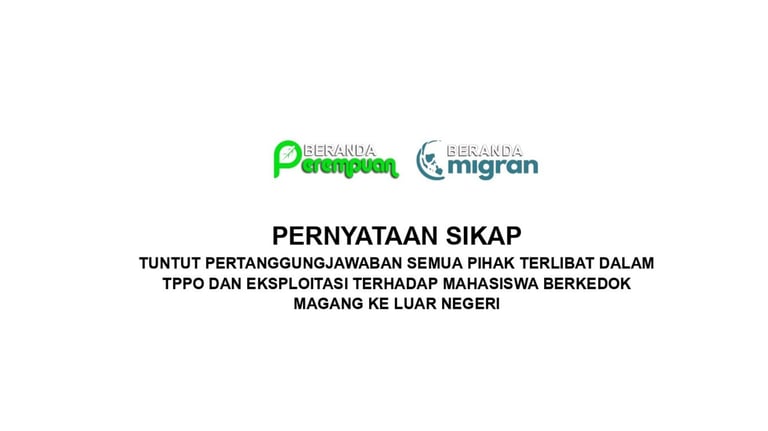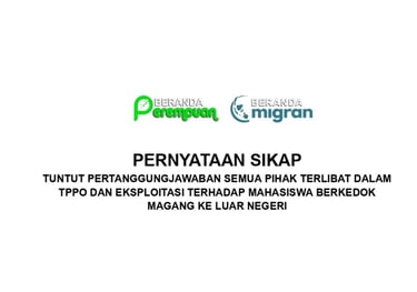 PERNYATAAN SIKAP TUNTUT PERTANGGUNGJAWABAN SEMUA PIHAK TERLIBAT DALAM TPPO DAN EKSPLOITASI TERHADAP MAHASISWA BERKEDOK MAGANG KE LUAR NEGERI