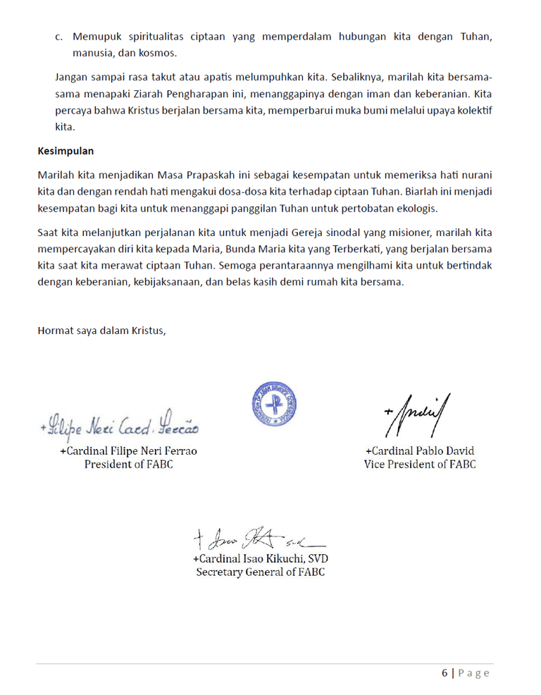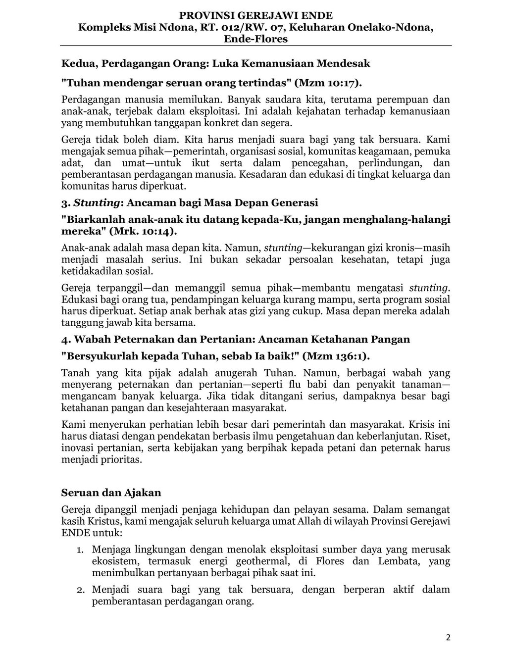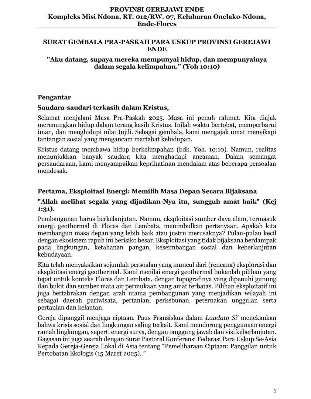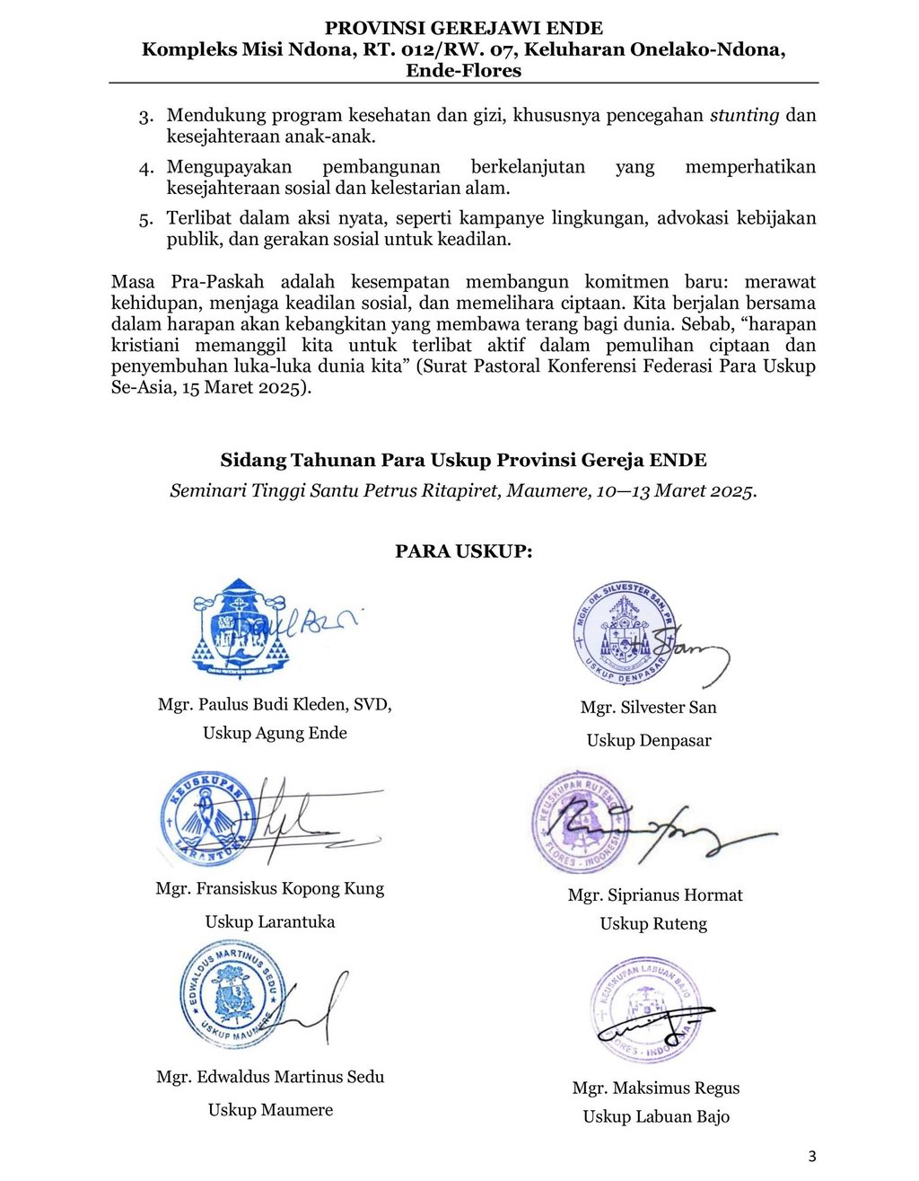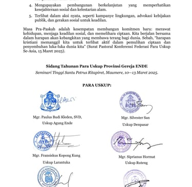 SURAT GEMBALA PRA-PASKAH PARA USKUP PROVINSI GEREJAWI ENDE