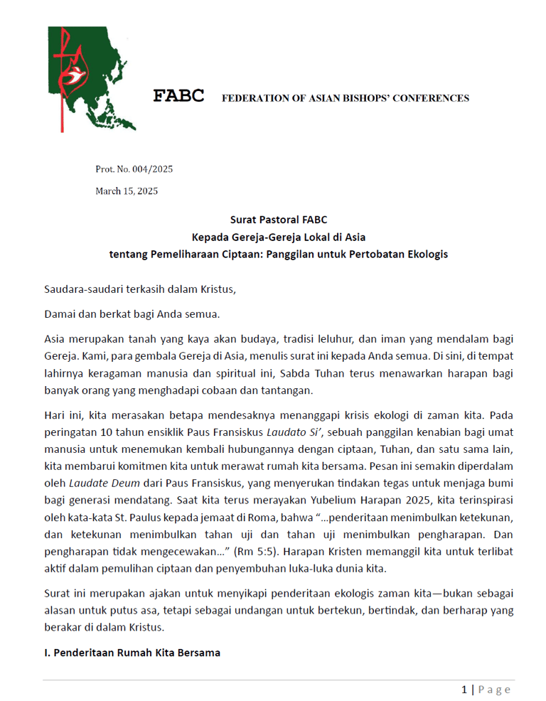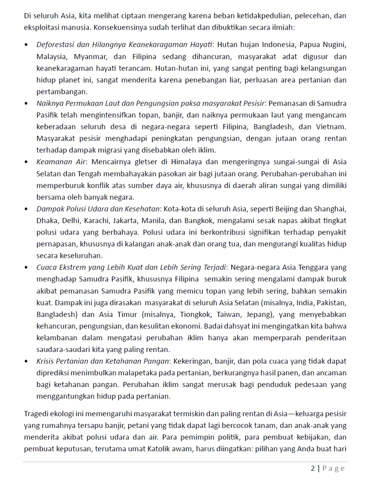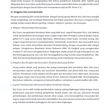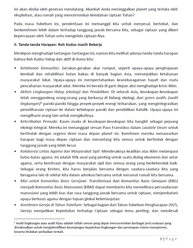 tentang Pemeliharaan Ciptaan: Panggilan untuk Pertobatan Ekologis
